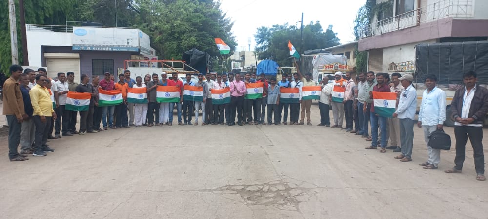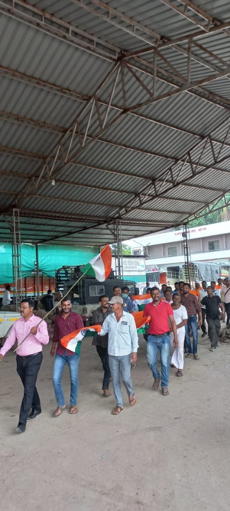 Sangamner – On the occasion of the Amrit Mahotsav of Independence, various programs were conducted at the main market yard of the Market Committee from August 12, 2022, to August 16, 2022, as per government orders. Accordingly, the office and main gate of the main market yard were illuminated with decorative lights from August 13, 2022, to August 15, 2022. Also, on August 12, 2022, to create awareness about the 'Har Ghar Tiranga' (Tricolor at Every Home) initiative, a rally was organized in the market committee yard by the employees and laborers. They created awareness among all market participants about this government initiative. Furthermore, on August 13, 2022, the flag hoisting ceremony was performed by the Market Committee Secretary, Mr. Satish Gunjal. Following this, a selfie point was set up in the main market yard as part of the 'Azadi Ka Amrit Mahotsav' (75th Anniversary of Indian Independence) celebrations, where all the laborers, farmers, traders, and other market participants enjoyed taking selfies. On August 14, 2022, under the guidance of the Hon. District Deputy Registrar, Cooperative Societies, Ahmednagar and the Hon. Deputy Registrar, Cooperative Societies, Sangamner, all the market committee employees participated in a rally of cooperative societies. Subsequently, a tree plantation program was conducted in the market committee premises in the presence of Hon. Mr. Kandalkar, Deputy Registrar, Cooperative Societies, Sangamner, and Hon. Mr. Wakchaure, Assistant Registrar, Cooperative Societies, Sangamner. From August 13, 2022 to August 15, 2022, the employees and laborers participated in a cricket tournament organized by the Hon. Tehsildar's office and the Sub-Divisional Magistrate's office. On August 15, 2022, the flag hoisting ceremony was performed in the main market yard by the Market Committee Secretary, Mr. Satish Gunjal. In this way, the market committee implemented various programs to celebrate the 'Azadi Ka Amrit Mahotsav'. Finally, on August 17, 2022, at 11:00 AM, the national anthem was sung collectively.