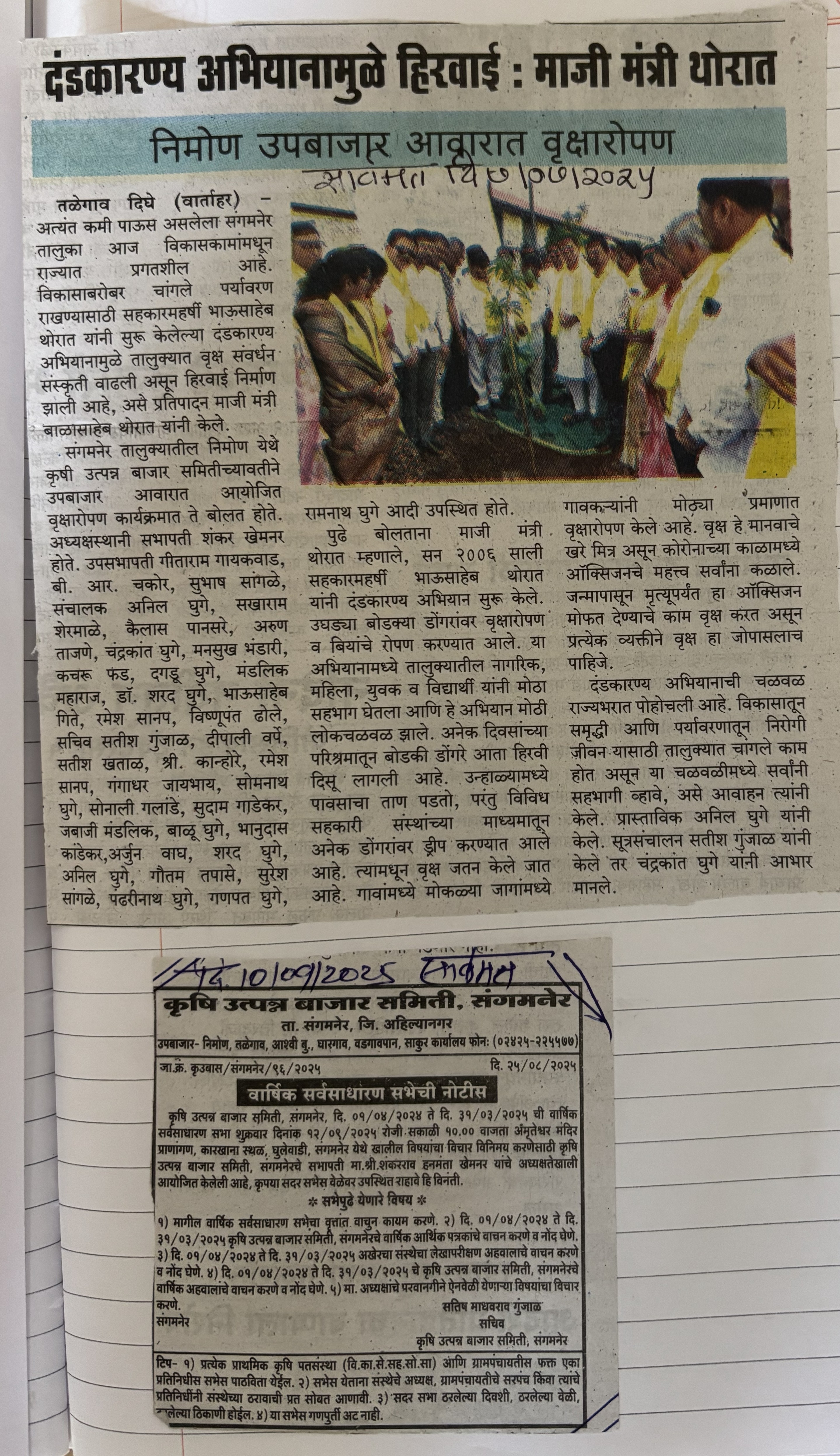 सभापती, प्रशासक व सचिव यांचा कार्यकाळ